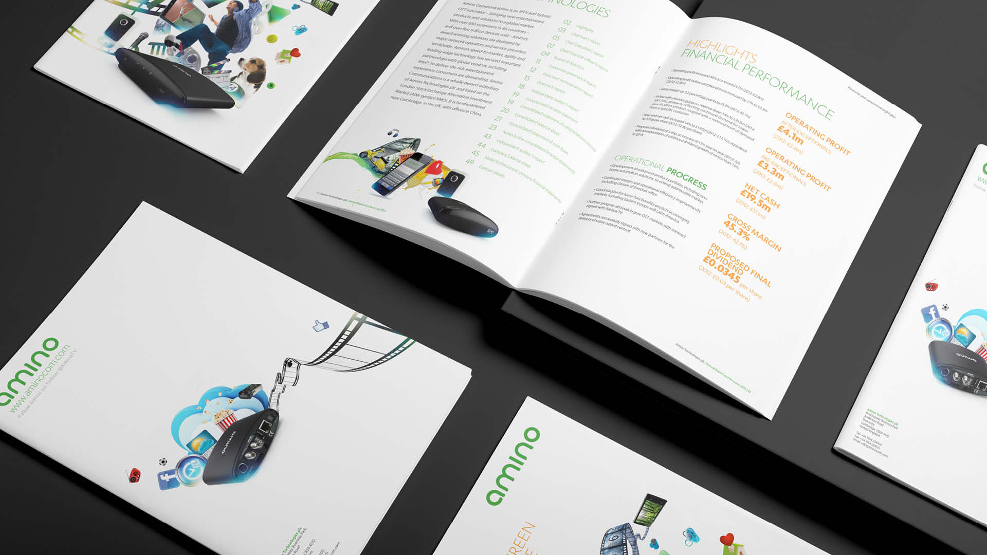 Amino has been a trusted IPTV innovator since 1997. This award-winning international organisation is a long standing client. We have worked on various projects over the years, including UI design, exhibition graphics and corporate collateral. Brandglue used a specific and deliberate design aesthetic for Amino’s campaigns. Our focus was to bring to life effortless, fluid and blissful moments which is what essentially Amino helps provide to their client's end users.